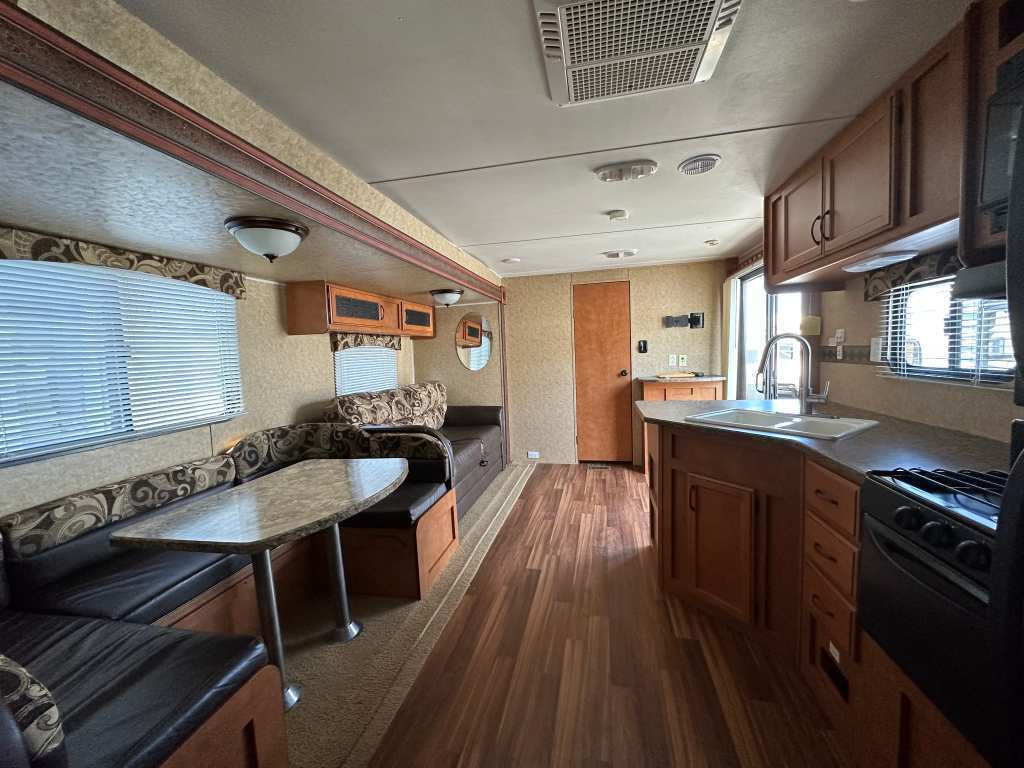 Gulf Stream Conquest 36FRSG 2014La Conquest 36FRSG 2014 est une roulotte bien aménagée, offrant un espace de vie généreux et confortable pour les séjours prolongés. Son intérieur pensé pour le confort comprend une cuisine fonctionnelle, un salon convivial et une chambre arrière bien séparée pour plus d’intimité. Grâce à ses espaces de rangement pratiques et sa disposition logique, cette roulotte est idéale pour les familles ou les aventuriers qui veulent plus d’espace sans sacrifier la facilité d’utilisation. ?? Super rabais offert – une occasion exceptionnelle à ne pas manquer. Dimensions et poids Profitez d’un espace généreux avec une longueur de 39,6 pieds et un poids de 8 127 lb, parfait pour une installation stable et durable. Capacités de réservoirs Réservoirs d’eaux usées (grises et noires) offrant une capacité totale de 74 gallons, pour plus d’autonomie et de tranquillité. Cuisine fonctionnelle et conviviale Préparez vos repas comme à la maison grâce à une cuisine bien équipée : Banquette en U idéale pour les repas en famille Poêle avec four intégré Réfrigérateur spacieux Hotte, micro-ondes et évier double Divan-lit pour accueillir facilement des invités Chambre confortable Reposez-vous dans une chambre douillette avec lit double et nombreux rangements intégrés, parfaits pour un séjour prolongé. Salle de bain complète Profitez d’une salle de bain tout confort, équipée d’une douche, d’un lavabo et d’une armoire à pharmacie. *** Prendre note que les photos et les options décrites peuvent différées *** Toute l'équipe de Centre du VR est fière de vous présenter le plus vaste inventaire de véhicules récréatifs neufs et d'occasions à vendre au Québec. Vous y trouverez notamment les marques Columbus, Rockwood, Impression, Kodiak, Coleman, Cruiser RV, Flagstaff, E-Pro, Springdale, Sunset Trail, Cougar, Chaparral, Bontrager Outdoors, motorisés Axis, Hurricane, Outlaw, Coachmen Cross Trail, Prism, Echelon, Fleetwood, Four winds, Compass, Beyond, Nova et Pixel. Remorques N&N, Apogée et Armorteck sont aussi disponibles. En inventaire pour vous, la série de génératrices Ducar. Vous avez un coup de coeur ? Envoyez-nous une demande d'information. Financement sur place. N'oubliez pas également que rien ne vaut une visite du modèle qui vous intéresse pour vous aider à prendre une décision éclairée. Passez donc nous voir afin de jeter un coup d'oeil plus détaillé à nos caravanes et caravanes à sellettes neuves.