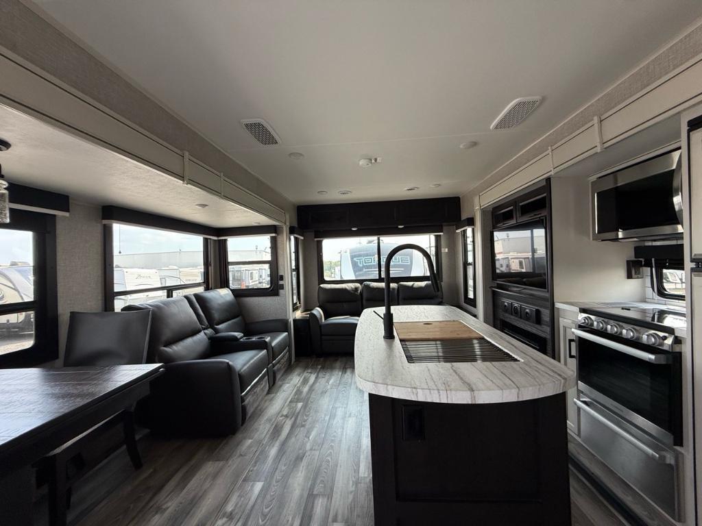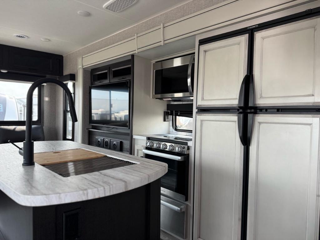 Jayco Jayco Eagle 294CKBS 2023Roulotte – Jayco 2023 – Eagle 294CKBS - La Jayco Eagle HT 294CKBS est une roulotte spacieuse et confortable, idéale pour les escapades prolongées ou les séjours en camping de luxe. Dimensions et capacités : • Longueur : 38 pieds • Poids à sec : 9 215 lbs • Réservoir d’eau douce : 81 gal • Réservoirs d’eaux usées : 74 gal • Couchages : Jusqu’à 6 personnes 5 caractéristiques principales : • Espace de vie : Grâce à ses trois extensions, l’intérieur est très spacieux une fois stationné. • Couchages : Elle peut accueillir jusqu’à 6 personnes avec un grand lit et des banquettes convertibles. • Cuisine : La cuisine est complète et fonctionnelle, avec tout ce qu’il faut pour cuisiner facilement. • Salle de bain : Elle dispose d’une vraie salle de bain fermée avec douche, lavabo et toilettes. • Vie extérieure : Un grand auvent motorisé crée un agréable espace ombragé à l’extérieur. Parfaite pour les couples ou les familles, cette remorque offre un excellent équilibre entre espace, confort et vie en plein air. *** Prendre note que les photos et les options décrites peuvent différées *** Toute l'équipe de Centre du VR est fière de vous présenter le plus vaste inventaire de véhicules récréatifs neufs et d'occasions à vendre au Québec. Vous y trouverez notamment les marques Columbus, Rockwood, Impression, Kodiak, Coleman, Cruiser RV, Flagstaff, E-Pro, Springdale, Sunset Trail, Cougar, Chaparral, Bontrager Outdoors, motorisés Axis, Hurricane, Outlaw, Coachmen Cross Trail, Prism, Echelon, Fleetwood, Four winds, Compass, Beyond, Nova et Pixel. Remorques N&N, Apogée et Armorteck sont aussi disponibles. En inventaire pour vous, la série de génératrices Ducar. Vous avez un coup de coeur ? Envoyez-nous une demande d'information. Financement sur place. N'oubliez pas également que rien ne vaut une visite du modèle qui vous intéresse pour vous aider à prendre une décision éclairée. Passez donc nous voir afin de jeter un coup d'oeil plus détaillé à nos caravanes et caravanes à sellettes neuves.