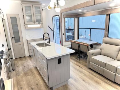 CARAVANE À SELLETTE ALLIANCE Paradigm 310RL 2025 neuf à vendre Cette fifthwheel de 101 pouces de large ET 34'11'' de long offre des 3 slide-outs hydrauliques, assurant une extension rapide et fiable pour un espace de vie généreux. Le panneau solaire 400W garantit une alimentation durable, idéale pour les escapades hors réseau. Les pneus Cooper 17.5 pouces combinés à la suspension Curt avec amortisseurs procurent une conduite stable et sécuritaire. Le pin box Curt Helux réduit les chocs pour un remorquage fluide. Son décor moderne et son énorme îlot apportent élégance et fonctionnalité. Profitez d’un divan-lit pour recevoir des invités et d’une douche résidentielle pour un confort comme à la maison. Le frigo 12V de 19 pi³ et le lit king offrent espace et commodité. Les deux auvents et les slide toppers protègent des intempéries, tandis que les 3 climatiseurs garantissent une fraîcheur optimale. Une caravane à sellette conçue pour des aventures sans compromis! Les photos et visites virtuelles et fiches produits sont à titre indicatif et sans inscription. Pour vous assurer de l'exactitude de toutes les caractéristiques et fonctionnalités du produit, veuillez vous référer à l'un de nos conseillers. Veuillez vous référer à l'un de nos conseillers de vente qualifiés. Ils seront ravis de vous aider à trouver le produit qui répondra le mieux à vos besoins.