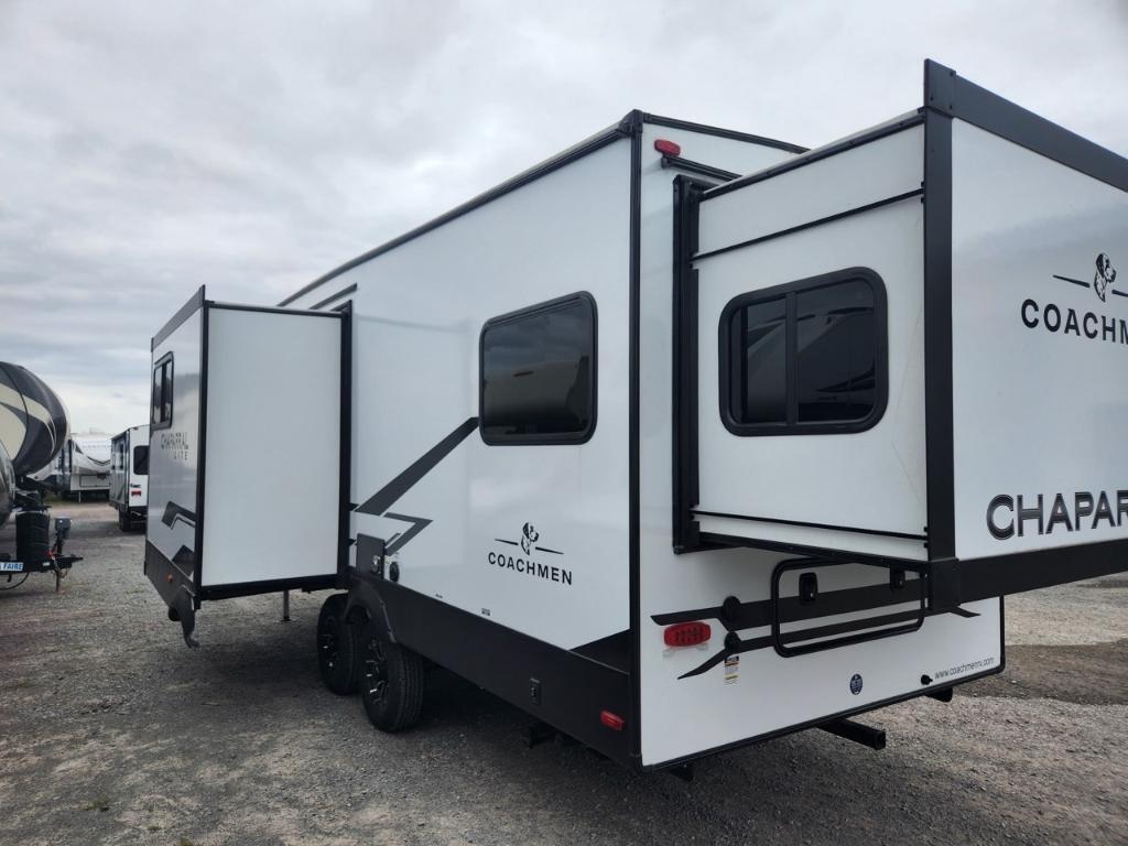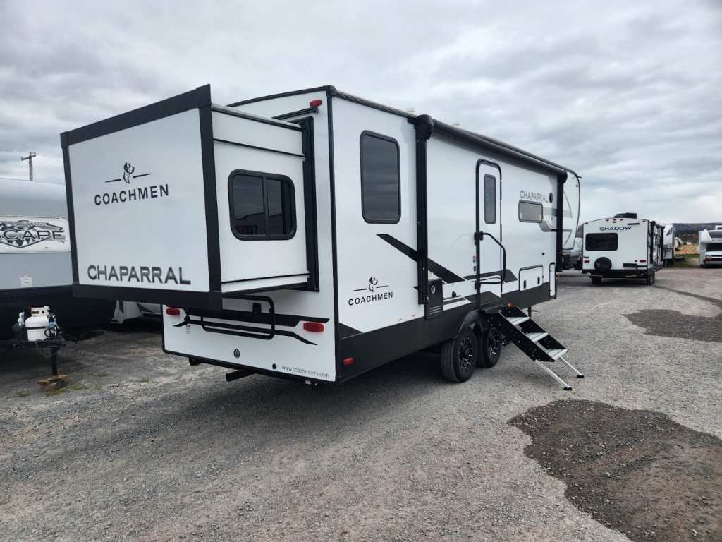 FOREST RIVER CHAPARRAL 218SE 2026Longueur : 8,6 m (28 pi) Hauteur extérieure : 3,4 m (11 pi) PNBV : 3 888 kg (8 500 lb) Poids à sec : 3 288 kg (7 375 - 7 400 lb) Poids à l’attelage : 520 kg (1144 lb) Largeur hors tout : 2,4 m (96 po) Capacités Réservoir d’eau douce : 173 litres (40 gallons) Réservoir d’eaux grises : 135 litres (33 gallons) Couchages : Jusqu’à 7 personnes Extérieur Coulisses : 2 Auvent : Auvent électrique avec bande lumineuse LED et réglage de l’inclinaison Solaire : Pack Solar Source+ avec panneau solaire de 200 W monté sur le toit, régulateur de charge et batterie marine Rangement : Coffre de rangement traversant avec portes à loquet Autres : Suspension Equa-Flex, pare-chocs arrière avec attelage pour accessoires, pré-équipement pour caméra de recul et de vision latérale Furrion, prise de raccordement rapide pour propane Intérieur Aménagement : Chambre avec couchettes à l’avant, salon en J Coin repas, lit queen coulissant. Cuisine : Réfrigérateur GE 12 V de 3,8 m³ (10 pi³), four GE en acier inoxydable de qualité supérieure, robinetterie de cuisine surélevée et micro-ondes en acier inoxydable. Séjour : Téléviseur LED intelligent 4K de 102 cm (40 po) avec barre de son, stores occultants à enroulement progressif et sièges cinéma Thomas Payne en option. Salle de bain : Douche avec siège et grande armoire dans la chambre. Autres : Éclairage intérieur LED HD Clear View amélioré avec détecteurs de mouvement, robinetterie de cuisine surélevée moderne et système audio Walnut amélioré.. Chambre enfants . *** Prendre note que les photos et les options décrites peuvent différées *** Toute l'équipe de Centre du VR est fière de vous présenter le plus vaste inventaire de véhicules récréatifs neufs et d'occasions à vendre au Québec. Vous y trouverez notamment les marques Columbus, Rockwood, Impression, Kodiak, Coleman, Cruiser RV, Flagstaff, E-Pro, Springdale, Sunset Trail, Cougar, Chaparral, Bontrager Outdoors, motorisés Axis, Hurricane, Outlaw, Coachmen Cross Trail, Prism, Echelon, Fleetwood, Four winds, Compass, Beyond, Nova et Pixel. Remorques N&N, Apogée et Armorteck sont aussi disponibles. En inventaire pour vous, la série de génératrices Ducar. Vous avez un coup de coeur ? Envoyez-nous une demande d'information. Financement sur place. N'oubliez pas également que rien ne vaut une visite du modèle qui vous intéresse pour vous aider à prendre une décision éclairée. Passez donc nous voir afin de jeter un coup d'oeil plus détaillé à nos caravanes et caravanes à sellettes neuves.