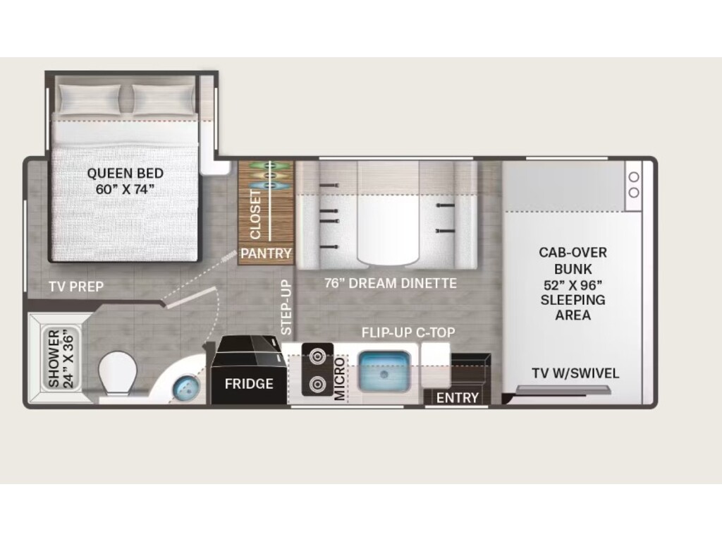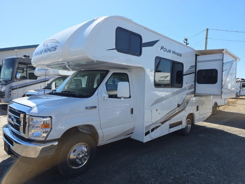 THOR FOURWINDS 22Z 2026 Marque du châssis Gué Type de moteur V8 Modèle de châssis E350 Cylindres 8 Puissance 325 ch à 3 800 tr/min Couple 450 pi-lb à 3 800 tr/min Déplacement 7,3 litres Type de carburant Gaz Besoins en carburant Régulier Type de carburation Injection de carburant Turbocompressé Non Suralimenté Non Transmission Marque de transmission TorqShift Type de transmission Automatique à 6 vitesses Surmultipliée Oui Transmission Type de transmission 4X2 Dimensions Longueur 24,08 pi (289 po) Largeur 8,25 pi (99 po) Hauteur 11 pi (132 po) Hauteur intérieure 7 pi (84 po) Empattement 13,17 pi (158 po) Poids Capacité de remorquage 8 000 livres PNBV 12 500 livres Capacités Capacité de carburant 55,0 gal. Capacité de stockage 198,6 gal. Réservoirs de rétention Nombre de réservoirs d'eau douce 1 Capacité totale du réservoir d'eau douce 40,0 gal. Nombre de réservoirs de rétention d'eaux grises 1 Capacité totale du réservoir d'eaux grises 35,0 gal. Nombre de réservoirs de rétention des eaux noires 1 Capacité totale du réservoir d'eaux noires 30,0 gal. Réservoir(s) de propane Nombre de réservoirs de propane 1 Capacité totale du réservoir de propane 9,6 gal. Capacité totale du réservoir de propane 41 livres .Longueur de l'auvent 15 pi (180 po) électrique. Nombre maximal de sommeils 6. Centre du VR : Votre expert en véhicules récréatifs au Québec Découvrez le plus vaste inventaire de VR neufs et d'occasion au meilleur prix. Que vous cherchiez une roulotte, une caravane à sellette (fifth wheel), une caravane-portée, un motorisé ou une remorque, notre équipe vous propose les plus grandes marques : Roulottes et Fifth Wheels : Rockwood, Flagstaff, Cougar, Springdale, Sunset Trail, Chaparral, Columbus, Impression, Kodiak, Coleman, E-Pro, Cruiser RV. Motorisés (Classe A, B, C) : Axis, Hurricane, Fleetwood, Four Winds, Coachmen Cross Trail, Prism, Echelon, Outlaw, Beyond, Nova. Remorques et Équipements : NN, Apogée, Armorteck et génératrices Ducar ou Cummins. Bien plus que de la vente : Un service complet Département de pièces et boutique : Un inventaire massif de pièces de remplacement et d'accessoires de camping pour améliorer votre confort. Service et réparation : Un centre de service spécialisé pour l'entretien et la réparation de vos unités, assuré par des techniciens experts. Financement : Profitez de nos solutions de financement avantageuses directement sur place. Un modèle vous intéresse ou vous avez besoin d'un entretien ? Contactez-nous pour une demande d'information ou passez nous voir en succursale pour une visite ! Note : Les photos et options peuvent différer de la réalité.