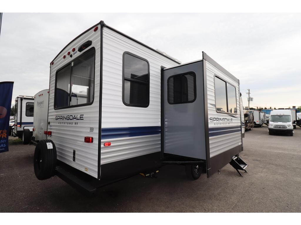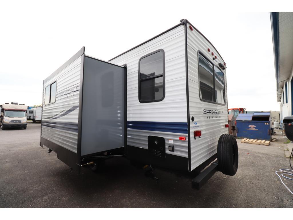 KEYSTONE RV SPRINGDALE 281RK 2023 Longueur 32,42 pi (389 po) Hauteur 11,25 pi (135 po) Poids Poids sec 7 420 livres Capacité de charge utile 2 200 livres Poids d'attelage 825 livres Réservoirs de rétention Nombre de réservoirs d'eau douce 1 Capacité totale du réservoir d'eau douce 48,0 gal. Nombre de réservoirs de rétention d'eaux grises 1 Capacité totale du réservoir d'eaux grises 78,0 gal. Nombre de réservoirs de rétention des eaux noires 1 Capacité totale du réservoir d'eaux noires 30,0 gal. Réservoir(s) de propane Nombre de réservoirs de propane 2 Capacité totale du réservoir de propane 9,4 gal. Capacité totale du réservoir de propane 40 livres. Longueur de l'auvent 12 pi (144 po) électrique. Configuration de la table de cuisine Dinette en U. Peux coucher 4 personnes. Centre du VR : Votre expert en véhicules récréatifs au Québec Découvrez le plus vaste inventaire de VR neufs et d'occasion au meilleur prix. Que vous cherchiez une roulotte, une caravane à sellette (fifth wheel), une caravane-portée, un motorisé ou une remorque, notre équipe vous propose les plus grandes marques : Roulottes et Fifth Wheels : Rockwood, Flagstaff, Cougar, Springdale, Sunset Trail, Chaparral, Columbus, Impression, Kodiak, Coleman, E-Pro, Cruiser RV. Motorisés (Classe A, B, C) : Axis, Hurricane, Fleetwood, Four Winds, Coachmen Cross Trail, Prism, Echelon, Outlaw, Beyond, Nova. Remorques et Équipements : NN, Apogée, Armorteck et génératrices Ducar ou Cummins. Bien plus que de la vente : Un service complet Département de pièces et boutique : Un inventaire massif de pièces de remplacement et d'accessoires de camping pour améliorer votre confort. Service et réparation : Un centre de service spécialisé pour l'entretien et la réparation de vos unités, assuré par des techniciens experts. Financement : Profitez de nos solutions de financement avantageuses directement sur place. Un modèle vous intéresse ou vous avez besoin d'un entretien ? Contactez-nous pour une demande d'information ou passez nous voir en succursale pour une visite ! Note : Les photos et options peuvent différer de la réalité.