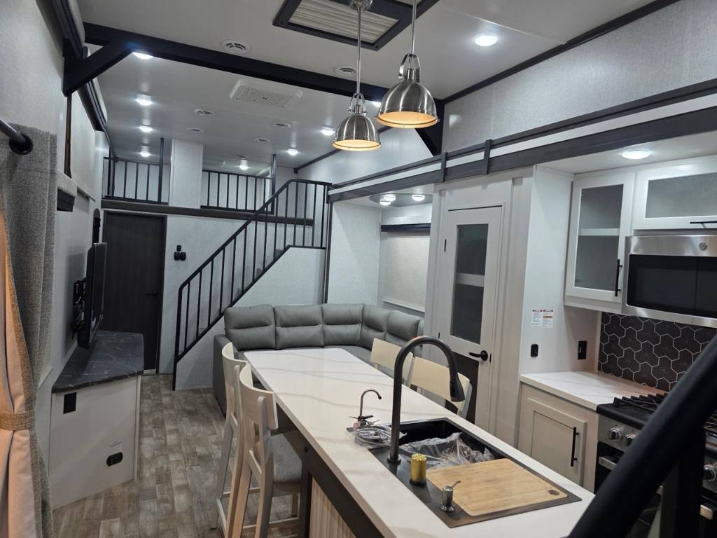 HAMPTON 390PVL 2025Longueur 42,92 pi (515 po) Largeur 8,25 pi (99 po) Hauteur 13,5 pi (162 po) Hauteur intérieure 8 pi (96 po) Poids Poids sec 12 157 livres Capacité de charge utile 2 843 livres PNBV 15 000 livres Poids d'attelage 1 632 livres Réservoirs de rétention Nombre de réservoirs d'eau douce 1 Capacité totale du réservoir d'eau douce 54,0 gal. Nombre de réservoirs de rétention d'eaux grises 2 Capacité totale du réservoir d'eaux grises 80,0 gal. Nombre de réservoirs de rétention des eaux noires 1 Capacité totale du réservoir d'eaux noires 40,0 gal. Réservoir(s) de propane Nombre de réservoirs de propane 2 Capacité totale du réservoir de propane 14,2 gal. Capacité totale du réservoir de propane 60 livres. Longueur de l'auvent 20 pi (240 po) électrique. Configuration de la table de cuisine Comptoir / Îlot Emplacement de la cuisine Centre. Nombre maximal de sommeils 9. *** Prendre note que les photos et les options décrites peuvent différées *** Toute l'équipe de Centre du VR est fière de vous présenter le plus vaste inventaire de véhicules récréatifs neufs et d'occasions à vendre au Québec. Vous y trouverez notamment les marques Columbus, Rockwood, Impression, Kodiak, Coleman, Cruiser RV, Flagstaff, E-Pro, Springdale, Sunset Trail, Cougar, Chaparral, Bontrager Outdoors, motorisés Axis, Hurricane, Outlaw, Coachmen Cross Trail, Prism, Echelon, Fleetwood, Four winds, Compass, Beyond, Nova et Pixel. Remorques N&N, Apogée et Armorteck sont aussi disponibles. En inventaire pour vous, la série de génératrices Ducar. Vous avez un coup de coeur ? Envoyez-nous une demande d'information. Financement sur place. N'oubliez pas également que rien ne vaut une visite du modèle qui vous intéresse pour vous aider à prendre une décision éclairée. Passez donc nous voir afin de jeter un coup d'oeil plus détaillé à nos caravanes et caravanes à sellettes neuves.
