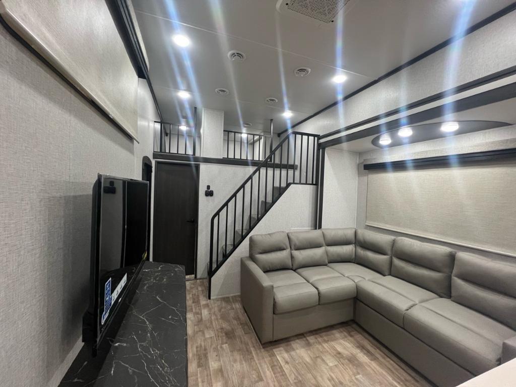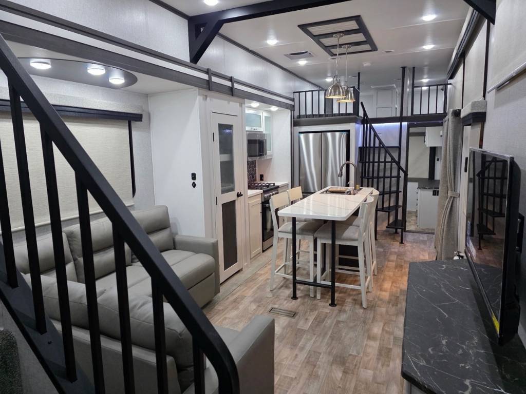 HAMPTON 390PVL 2025 Longueur 42,92 pi (515 po) Largeur 8,25 pi (99 po) Hauteur 13,5 pi (162 po) Hauteur intérieure 8 pi (96 po) Poids Poids sec 12 157 livres Capacité de charge utile 2 843 livres PNBV 15 000 livres Poids d'attelage 1 632 livres Réservoirs de rétention Nombre de réservoirs d'eau douce 1 Capacité totale du réservoir d'eau douce 54,0 gal. Nombre de réservoirs de rétention d'eaux grises 2 Capacité totale du réservoir d'eaux grises 80,0 gal. Nombre de réservoirs de rétention des eaux noires 1 Capacité totale du réservoir d'eaux noires 40,0 gal. Réservoir(s) de propane Nombre de réservoirs de propane 2 Capacité totale du réservoir de propane 14,2 gal. Capacité totale du réservoir de propane 60 livres. Longueur de l'auvent 20 pi (240 po) électrique. Configuration de la table de cuisine Comptoir / Îlot Emplacement de la cuisine Centre. Nombre maximal de sommeils 9. Centre du VR : Votre expert en véhicules récréatifs au Québec Découvrez le plus vaste inventaire de VR neufs et d'occasion au meilleur prix. Que vous cherchiez une roulotte, une caravane à sellette (fifth wheel), une caravane-portée, un motorisé ou une remorque, notre équipe vous propose les plus grandes marques : Roulottes et Fifth Wheels : Rockwood, Flagstaff, Cougar, Springdale, Sunset Trail, Chaparral, Columbus, Impression, Kodiak, Coleman, E-Pro, Cruiser RV. Motorisés (Classe A, B, C) : Axis, Hurricane, Fleetwood, Four Winds, Coachmen Cross Trail, Prism, Echelon, Outlaw, Beyond, Nova. Remorques et Équipements : NN, Apogée, Armorteck et génératrices Ducar ou Cummins. Bien plus que de la vente : Un service complet Département de pièces et boutique : Un inventaire massif de pièces de remplacement et d'accessoires de camping pour améliorer votre confort. Service et réparation : Un centre de service spécialisé pour l'entretien et la réparation de vos unités, assuré par des techniciens experts. Financement : Profitez de nos solutions de financement avantageuses directement sur place. Un modèle vous intéresse ou vous avez besoin d'un entretien ? Contactez-nous pour une demande d'information ou passez nous voir en succursale pour une visite ! Note : Les photos et options peuvent différer de la réalité.