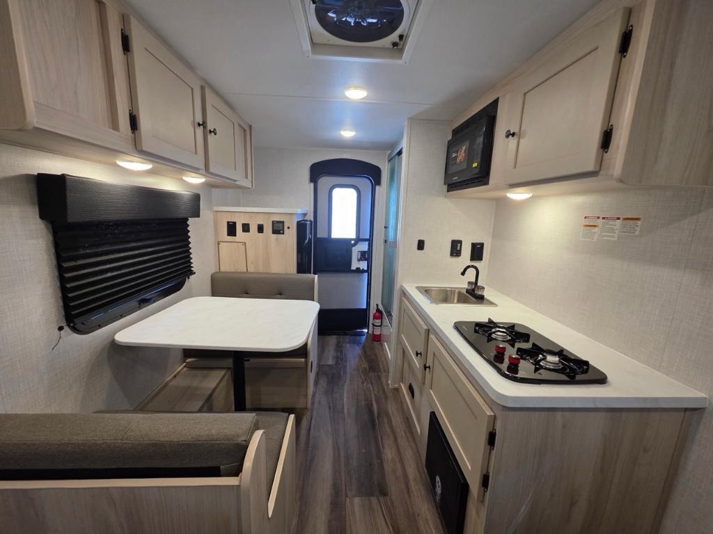 BRAXTON CREEK BONTRAGER 17MB 2025 LÉGERE ,AZDEL ,ROBUSTE Dimensions Longueur 18 pi (216 po) Largeur 6,75 pi (81 po) Hauteur 8,67 pi (104 po) Poids Poids sec 2 560 livres Capacité de charge utile 611 livres PNBV 3 320 livres Poids de l'attelage 320 livres Réservoirs de rétention Nombre de réservoirs d'eau douce 1 Capacité totale du réservoir d'eau douce 18,0 gal. Nombre de réservoirs de rétention d'eaux grises 1 Capacité totale du réservoir d'eaux grises 18,0 gal. Nombre de réservoirs de rétention des eaux noires 1 Capacité totale du réservoir d'eaux noires 17,0 gal. Réservoir(s) de propane Nombre de réservoirs de propane 1 Construction Matériau du corps Aluminium Construction des parois latérales Fibre de verreVérins de nivellement Type de vérin de nivellement Manuel arrièreFour / Cuisinière Mise en page Poêle Nombre de brûleurs du four 2Réfrigérateur Taille du réfrigérateur Compact Mode d'alimentation du réfrigérateur Électrique Centre du VR : Votre expert en véhicules récréatifs au Québec Découvrez le plus vaste inventaire de VR neufs et d'occasion au meilleur prix. Que vous cherchiez une roulotte, une caravane à sellette (fifth wheel), une caravane-portée, un motorisé ou une remorque, notre équipe vous propose les plus grandes marques : Roulottes et Fifth Wheels : Rockwood, Flagstaff, Cougar, Springdale, Sunset Trail, Chaparral, Columbus, Impression, Kodiak, Coleman, E-Pro, Cruiser RV. Motorisés (Classe A, B, C) : Axis, Hurricane, Fleetwood, Four Winds, Coachmen Cross Trail, Prism, Echelon, Outlaw, Beyond, Nova. Remorques et Équipements : NN, Apogée, Armorteck et génératrices Ducar ou Cummins. Bien plus que de la vente : Un service complet Département de pièces et boutique : Un inventaire massif de pièces de remplacement et d'accessoires de camping pour améliorer votre confort. Service et réparation : Un centre de service spécialisé pour l'entretien et la réparation de vos unités, assuré par des techniciens experts. Financement : Profitez de nos solutions de financement avantageuses directement sur place. Un modèle vous intéresse ou vous avez besoin d'un entretien ? Contactez-nous pour une demande d'information ou passez nous voir en succursale pour une visite ! Note : Les photos et options peuvent différer de la réalité.