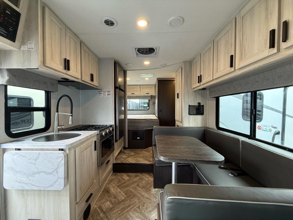 FOREST RIVER SUNSEEKER 2350LE 2023Motorisé Classe C – Forest River 2350LE Sunseeker - Le Forest River Sunseeker 2350S LE 2023 est un camping-car compact et fonctionnel, conçu pour offrir confort et praticité aux voyageurs. Spécifications mécaniques : • Moteur : Triton V8 • Puissance : 325 chevaux à 3 750 tr-min • Type de carburant : Gaz • Transmission : TorqShift Automatique à 6 vitesses • Châssis : Ford E350 Dimensions & Capacités : • Longueur totale : 24.5 pieds • Poids à sec : 10 050 lbs • Réservoir d’eau douce : 44 gal • Réservoirs d’eaux usées : 78 gal • Couchages : Jusqu’à 6 personnes 5 caractéristiques principales : • Camping-car compact (environ 7,5 m), facile à conduire et stationner • Couchages pour jusqu’à 6 personnes (lit queen, dinette convertible, lit en capucine) • Cuisine équipée : réfrigérateur 12 V, micro-ondes à convection, plaque 3 feux • Salle de bain complète avec douche séparée • Confort moderne : climatisation, chauffage, TV, ports USB, auvent électrique LED • Équipements de sécurité : caméras de recul et latérales, rangements pratiques Avec ses nombreux équipements et son agencement optimisé, il représente un excellent choix pour ceux qui veulent partir à l’aventure sans compromis sur le confort. *** Prendre note que les photos et les options décrites peuvent différées *** Toute l'équipe de Centre du VR est fière de vous présenter le plus vaste inventaire de véhicules récréatifs neufs et d'occasions à vendre au Québec. Vous y trouverez notamment les marques Columbus, Rockwood, Impression, Kodiak, Coleman, Cruiser RV, Flagstaff, E-Pro, Springdale, Sunset Trail, Cougar, Chaparral, Bontrager Outdoors, motorisés Axis, Hurricane, Outlaw, Coachmen Cross Trail, Prism, Echelon, Fleetwood, Four winds, Compass, Beyond, Nova et Pixel. Remorques N&N, Apogée et Armorteck sont aussi disponibles. En inventaire pour vous, la série de génératrices Ducar. Vous avez un coup de coeur ? Envoyez-nous une demande d'information. Financement sur place. N'oubliez pas également que rien ne vaut une visite du modèle qui vous intéresse pour vous aider à prendre une décision éclairée. Passez donc nous voir afin de jeter un coup d'oeil plus détaillé à nos caravanes et caravanes à sellettes neuves.