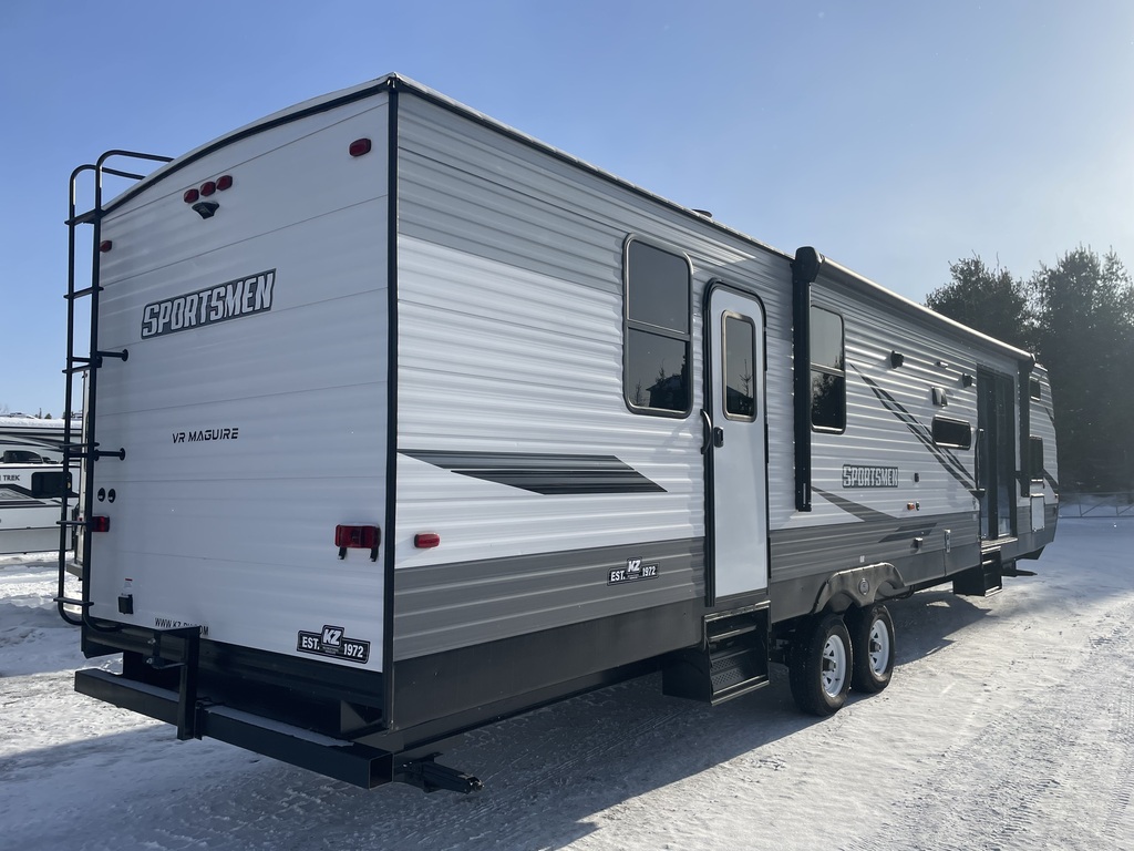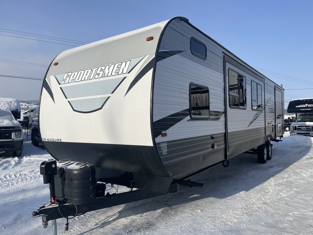 LA CARAVANE DE VOYAGE SPORTSMEN 362BH 2021 A UNE LONGUEUR HORS TOUT DE 40 PIEDS 9 POUCES POUR UN POIDS DE 8280 LBS, PEUT ACCUEILLIR JUSQU'À 6 PERSONNES POUR COUCHER, CHAMBRE DE STYLE DORTOIR À L'AVANT AVEC 3 LITS SUPERPOSÉS DE 34"X72" ET UNE BANQUETTE LIT DE 28"X72", CHAMBRE DES MAÎTRES À L'ARRIÈRE AVEC LIT KING 70"X80", RÉFRIGÉRATEUR AVEC CONGÉLATEUR ÉLECTRIQUE 18 PI/CU, FOUR AVEC CUISINIÈRE À 3 BRÛLEURS, MICRO ONDE, TÉLÉ, BARRE DE SON, FOYER, PORTE PATIO, AUVENT ÉLECTRIQUE DE 20 PIEDS ET PLUS ENCORE! *QUELQUES PETITES BOSSES À L'ARRIÈRE (VOIR PHOTOS) TRÈS BELLE ROULOTTE AVEC BEAUCOUP DE RANGEMENT! ROULOTTE VENDU INSPECTÉE ET GARANTIE. À SEULEMENT 40 MINUTES DES PONTS DE QUÉBEC. LIVRAISON DISPONIBLE PARTOUT AU QUÉBEC! PROFITEZ DE NOTRE FINANCEMENT FACILE ET RAPIDE. POUR PLUS D'INFOS, WWW.VRMAGUIRE.COM, SANS FRAIS 1-888-799-0874, BUREAU 418-774-5066, CELL OU MESSAGE TEXTE KEVIN 418-386-0025, AU PLAISIR DE VOUS SERVIR ET À BIENTÔT! **TOUJOURS LES MEILLEURS PRIX DU MARCHÉ**