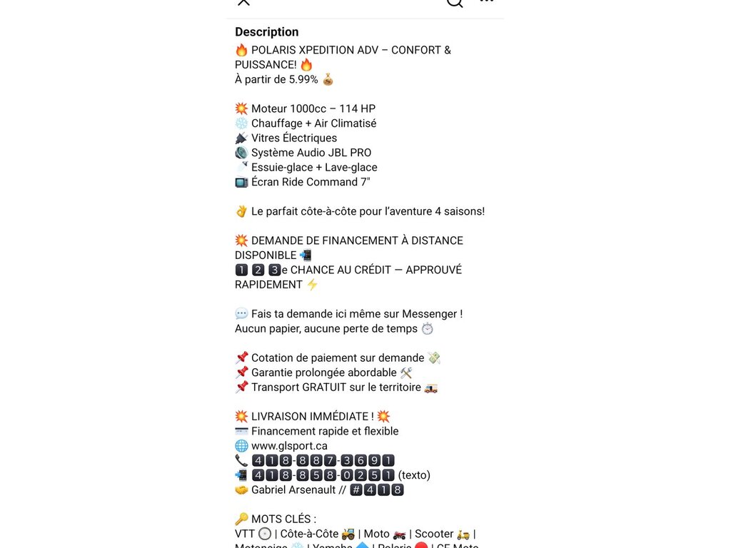 2026 Polaris XPEDITION ADV 5 NORTHSTAR GARANTIE 2 ANS POLARIS EXPEDITION ADV 5 1000 NORTHSTAR 2026 LE CÔTE À CÔTE ULTIME POUR VOS TRAVAUX Livraison...