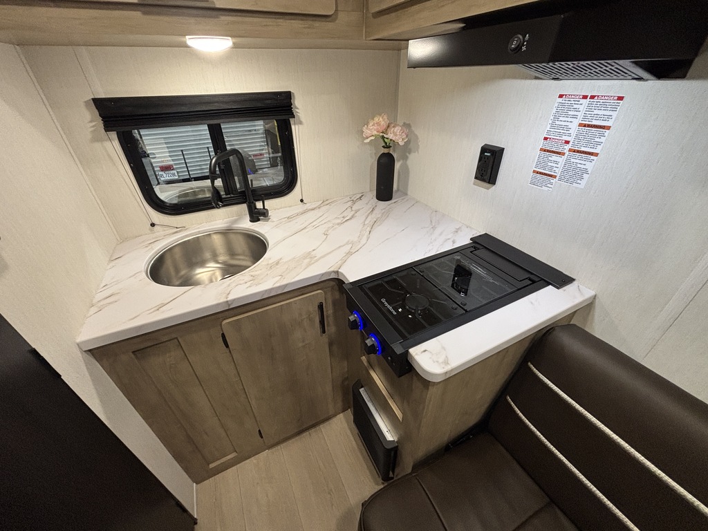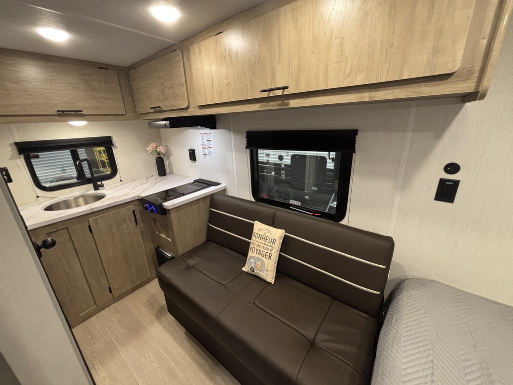 WOLF PUP 14RKLP 2026. ROULOTTE LÉGÈRE POUR COUPLE AVEC UN POIDS DE 2600 LIVRES SEULEMENT INTÉRIEUR: - Cuisine bien équipée avec évier, 2 ronds de poêle, réfrigérateur et micro-ondes - Sofa qui se transforme en lit - Beaucoup de rangement - Grand lit avant avec rangement dessous - Salle de bain avec bain douche EXTÉREIUR: - Auvent électrique - Coffre de rangement photos à titre indicatif