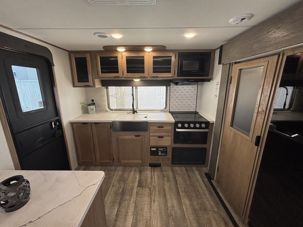GREY WOLF 25RR BLACK LABEL 2026. Roulotte cargo avec un poids de 5300 livres INTÉRIEUR: - Cuisine avec comptoir robuste, évier double, cuisinière 3...