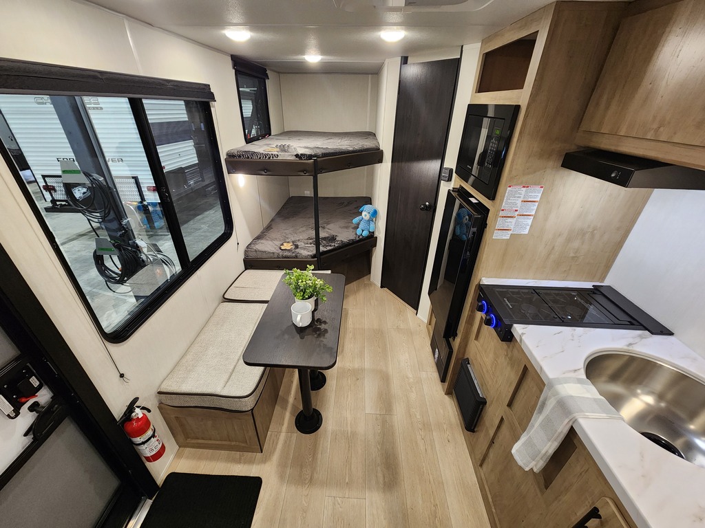 EN INVENTAIRE !!!! WOLF PUP 17LP 2026. ROULOTTE FAMILIALE TRÈS LÉGÈRE AVEC UN POIDS DE 3100 LIVRES INTÉRIEUR: - Cuisine toute équipée - Banquette simple - Grand lit avant - Lits superposés doubles arrière - Salle de bain arrière avec bain-douche EXTÉRIEUR - Auvent électrique - Coffres de rangement - Vérin stabilisateur arrière électrique photos à titre indicatif