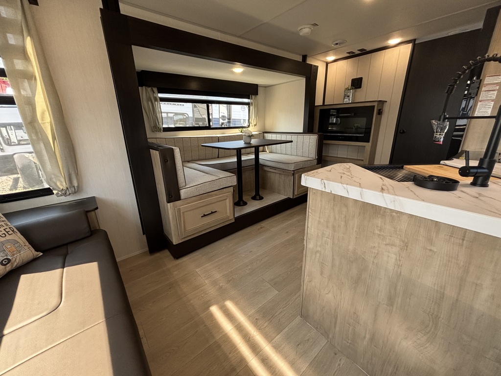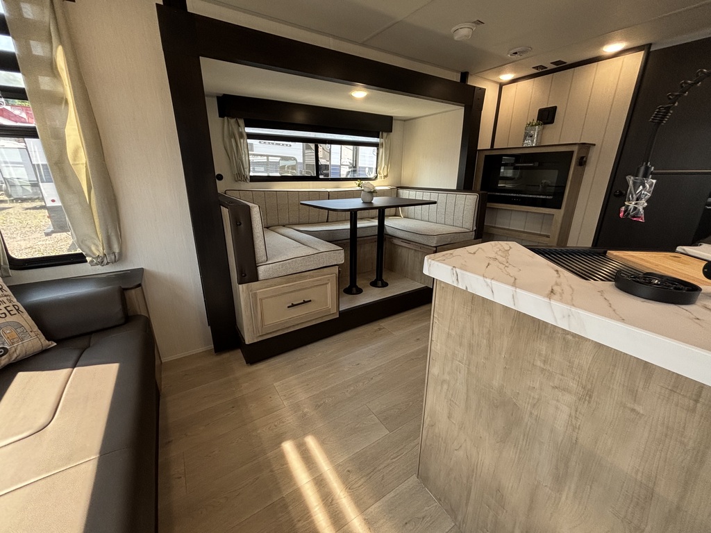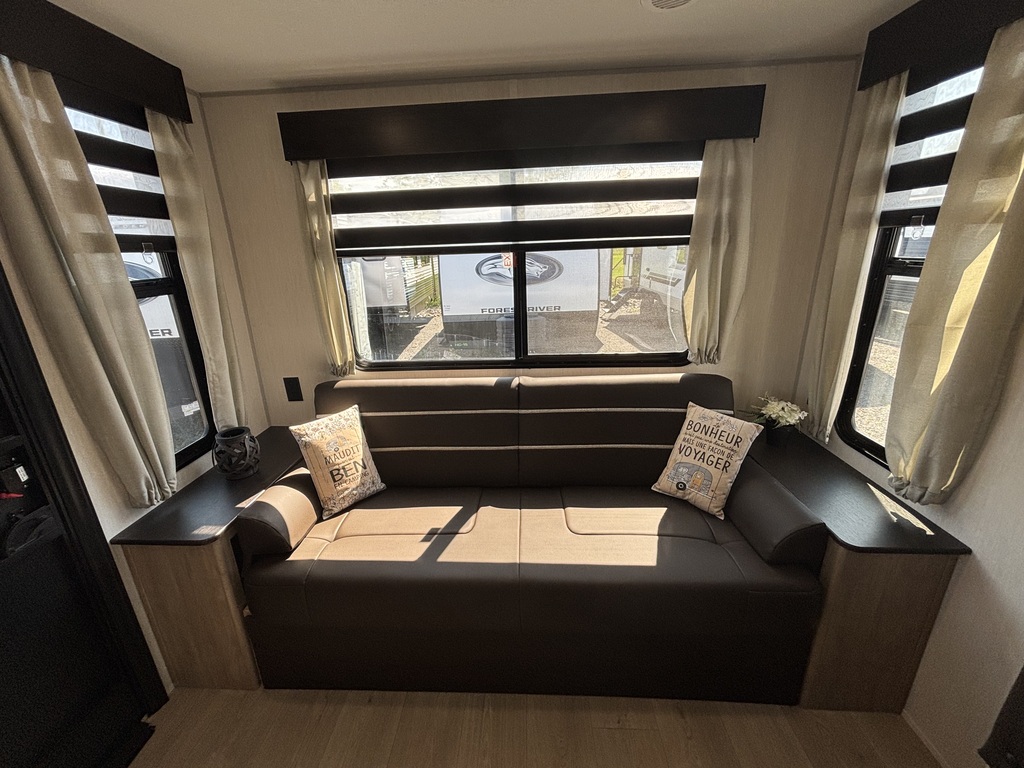 VENDU !!!!! GREY WOLF 23MK 2026 ROULOTTE POUR COUPLE AVEC UN POIDS DE 5000 LIVRES INTÉRIEUR: - Cuisine avec évier double, cuisinière 3 ronds, micro-ondes convection air-fryer et grand réfrigérateur - Grande banquette en U qui se transforme en lit - Sofa arrière qui se transforme en lit entouré d'une belle fenestration - Foyer électrique - Chambre avant avec grand lit et rangement tout autour - Salle de bain centrale avec douche en coin et belle vanité EXTÉRIEUR: - Auvent électrique avec lumières - Haut-parleurs extérieurs - Marches ultra robustes - Coffres de rangement - Stabilisateurs électrique - Réfrigérateur extérieur - Rack arrière
