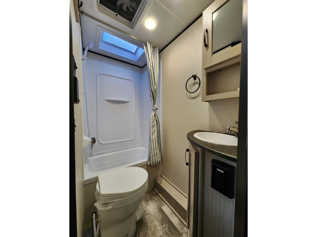 Options : Réservoir de propane, Climatiseur au plafond, Roue de secours, Toilette, Lits superposés, Micro-onde, Cuisinière, Auvent, Chauffe-eau