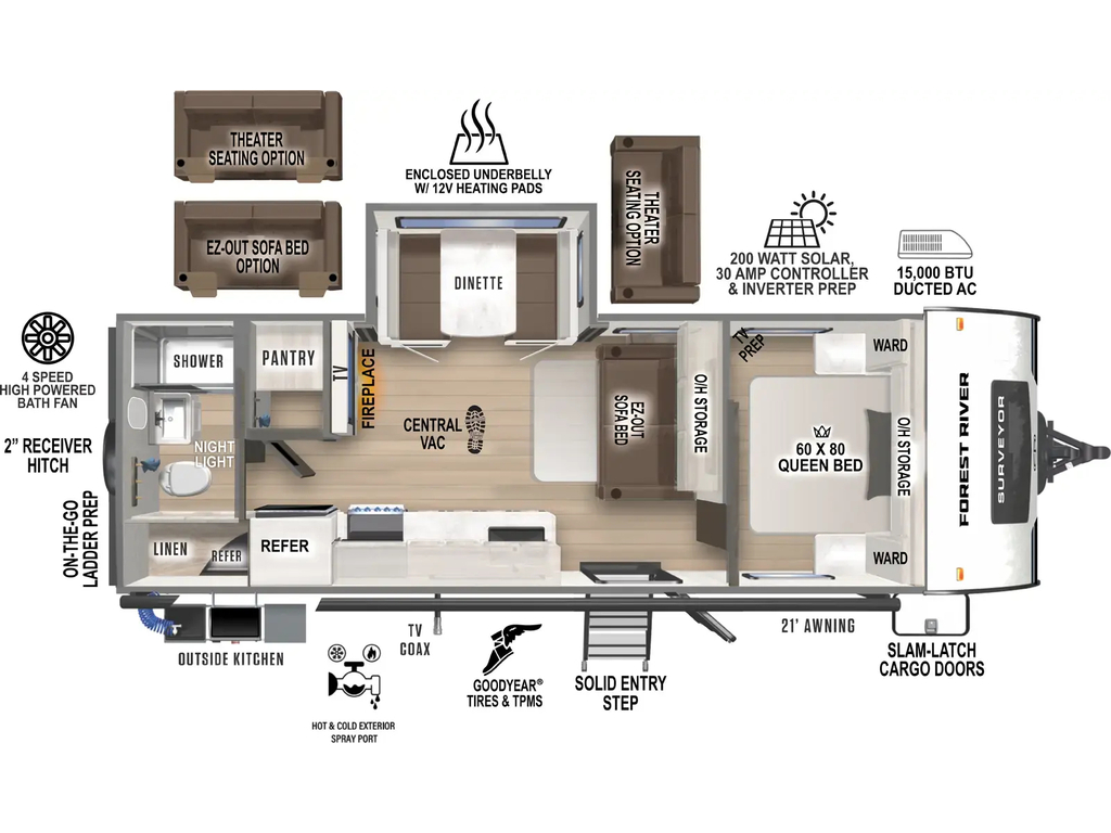 NOUVEAUTÉ CHEZ VR MAGUIRE, ARRIVE TRÈS BIENTÔT! LA CARAVANE DE VOYAGE SURVEYOR 252RBLE 2026 A UNE LONGUEUR HORS TOUT DE 29 PIEDS 7 POUCES POUR UN POIDS DE 6033 LBS, 1 EXTENSION, PEUT ACCUEILLIR JUSQU'À 6 PERSONNES POUR COUCHER, GRAND LIT DE 60X80, SOFA LIT, DINETTE BANQUETTE, GRAND RÉFRIGÉRATEUR, FOUR AVEC CUISINIÈRE À 3 BRÛLEURS, FOYER, AIR CLIMATISÉ, PANNEAU SOLAIRE, CUISINE EXTÉRIEUR ET PLUS ENCORE! TRÈS BELLE ROULOTTE AVEC BEAUCOUP DE RANGEMENT! VENDUE INSPECTÉE ET GARANTIE. À SEULEMENT 40 MINUTES DES PONTS DE QUÉBEC. LIVRAISON DISPONIBLE PARTOUT AU QUÉBEC! PROFITEZ DE NOTRE FINANCEMENT FACILE ET RAPIDE. POUR PLUS D'INFOS, WWW.VRMAGUIRE.COM, SANS FRAIS 1-888-799-0874, BUREAU 418-774-5066, CELL OU MESSAGE TEXTE KEVIN 418-386-0025, AU PLAISIR DE VOUS SERVIR ET À BIENTÔT! **TOUJOURS LES MEILLEURS PRIX DU MARCHÉ**