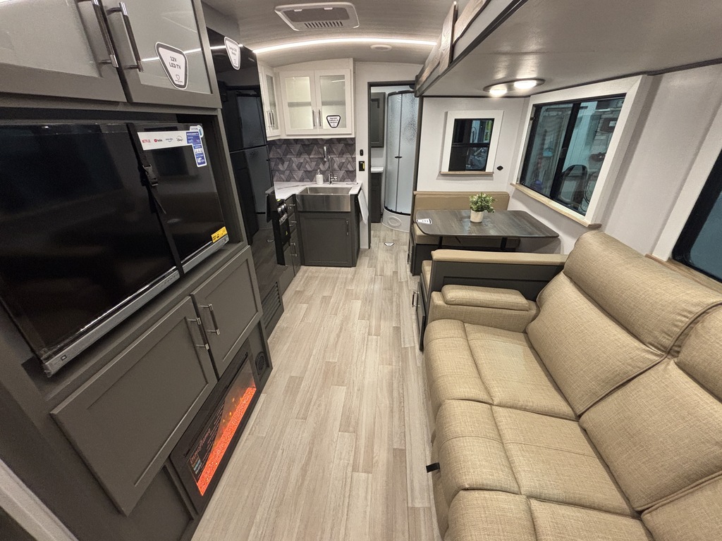 BULLET 260RBS 2026 ROULOTTE POUR COUPLE AVEC UN POIDS DE 6800 LIVRES INTÉRIEUR: - Cuisine avec grand évier, cuisinière avec dessus vitré, micro-ondes convection air fryer et grand réfrigérateur - Extension de comptoir pour plus d'espace de travail - Banquette double qui se transforme en lit - Sofa inclinable - Foyer électrique - Téléviseur 40 pouces - Chambre avant avec grand lit et rangement tout autour - Salle de bain arrière avec douche en coin, belle vanité et beaucoup de rangement - Éclairage avec gradateur EXTÉRIEUR: - Auvent électrique - Marches ultra robustes - Cuisine extérieure - Coffres de rangement - Jack électrique - Stabilisateurs électriques photos à titre indicatif