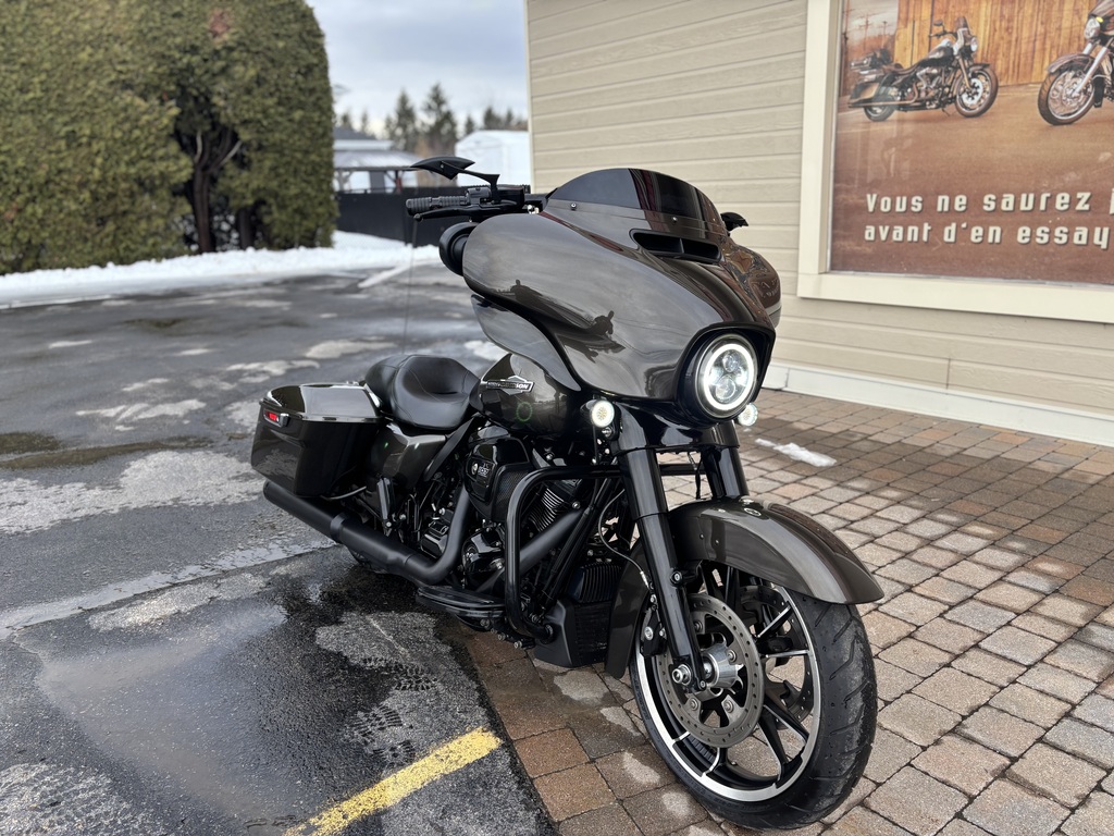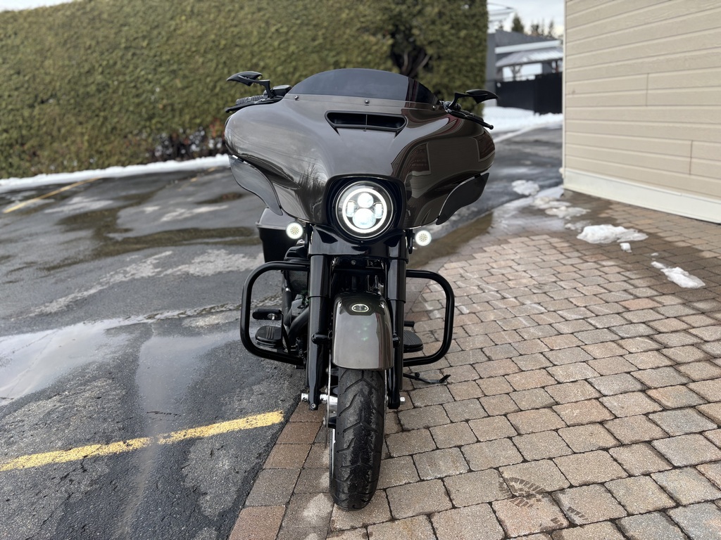 magnifique Street glide (flhx) 2021 avec seulement 37527 km (magnifique couleur ) ,moteur 107 pc 6 vitesse avec rajout de noir sur le moteur+ fourche+guidon +++, Cruise contrôle , frein ABS , ape 14 pouces avec guidon chauffant , silencieux reinette 4.5 , suspension a air ajustable au contrôle , GPS audio premium , alarme Harley ,lumière LED , balance de garantie hd , a voir et le financement est disponible !