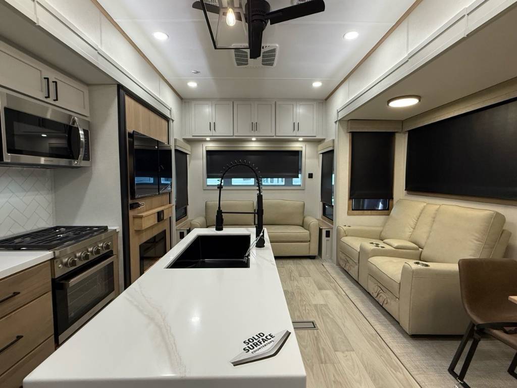 Forest River 389HBFL 2026 Roulotte de Parc Sandpiper 389HBFL 2026 Mesure 39'11 et pèse 11 774 lb 2 extensions face à face au niveau de la cuisine et salon ce qui permet d'avoir beaucoup d'espace dans l'aire commune. Salon disposant d'un sofa-lit et canapé-théâtre, téléviseur, foyer électrique avec rangement dissimulé derrière. Grande cuisine avec îlot central, réfrigérateur résidentiel Centre du VR : Votre expert en véhicules récréatifs au Québec Découvrez le plus vaste inventaire de VR neufs et d'occasion au meilleur prix. Que vous cherchiez une roulotte, une caravane à sellette (fifth wheel), une caravane-portée, un motorisé ou une remorque, notre équipe vous propose les plus grandes marques : Roulottes et Fifth Wheels : Rockwood, Flagstaff, Cougar, Springdale, Sunset Trail, Chaparral, Columbus, Impression, Kodiak, Coleman, E-Pro, Cruiser RV. Motorisés (Classe A, B, C) : Axis, Hurricane, Fleetwood, Four Winds, Coachmen Cross Trail, Prism, Echelon, Outlaw, Beyond, Nova. Remorques et Équipements : NN, Apogée, Armorteck et génératrices Ducar ou Cummins. Bien plus que de la vente : Un service complet Département de pièces et boutique : Un inventaire massif de pièces de remplacement et d'accessoires de camping pour améliorer votre confort. Service et réparation : Un centre de service spécialisé pour l'entretien et la réparation de vos unités, assuré par des techniciens experts. Financement : Profitez de nos solutions de financement avantageuses directement sur place. Un modèle vous intéresse ou vous avez besoin d'un entretien ? Contactez-nous pour une demande d'information ou passez nous voir en succursale pour une visite ! Note : Les photos et options peuvent différer de la réalité.
