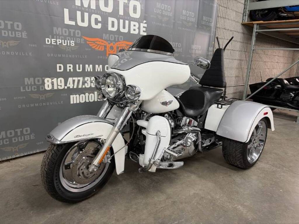 Harley-Davidson FLSTN Softail Deluxe Trike 2005 SEULEMENT 60 112 KM, MOTO CANADIENNE CONVERTIE EN TRIKE ET APPROUVÉ PAR LA SAAQ, FAIRING, ROUES CHROMÉES, PHARES-AUXILIAIRES, CONTRÔLES CHROMÉS, SISSY BAR, REPOSES-PIEDS CUSTOM, Nous offrons une garantie de 30 jours ou 1 700 km. Garanties prolongées disponibles jusqu’à 5 ans — informez-vous! Financement disponible à taux compétitifs. Programme de rétablissement de crédit : 2e et 3e chance au crédit. * We speak English as well * Moto Luc Dubé, une entreprise familiale à votre service depuis maintenant 30 ans. Situé à Drummondville, au carrefour des autoroutes 20 et 55, à mi-chemin entre Montréal, Québec, Trois-Rivières et Sherbrooke.