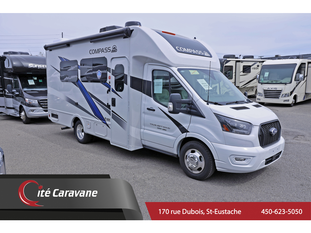 disponible sur commande -available on order Thor Compass 23TE CLASSE B+ , Nouvel mécanique Ford Ecoboost AWD Extérieur : Smooth sailing HD Max , tissu : estate grey , boiseries : ivory coast , 1 extension , Nouveau Châssis avec roues mags aluminium, Technologie assistance de voie, Nouvelle génération de technologie a commande vocale, Nouveau Centre de contrôle pour lhabitacle BM pro haut gamme, Préparation de panneau solaire et encore plus !! génératrice Flex power 4000watts , toit en TPO de qualité supérieur ,auvent électrique de 14 pieds, frigidaire 5.5 pi cubes ,lumières DEL , chauffage 19000BTU, air climatisé de 13500 BTU, prélart a grandeur, comptoirs laminés, 2 tv , caméra de recul , capacité de remorquage de 5000lbs, miroirs électriques, douche extérieur , ronds de poêle 2 bruleurs , micro-onde a convection , fan fantastique , réservoirs chauffants , 2 batterie auxiliaires etc etc etc ! MEILLEUR PRIX AU QUÉBEC www.citecaravane.com 450-623-5050 170 RUE DUBOIS , ST-EUSTACHE, SUR LE BORD DE LA 640! UNE ENTREPRISE FAMILIALE A VOTRE SERVICE DEPUIS 1973 ! LE SPÉCIALISTE DU VR AU QUÉBEC Thor Compass 23TE CLASSE B+, New Ford Ecoboost engine AWD Exterior : Smooth sailing HD Max , fabric : estate grey, wood : ivory coast , 1 slide , New Chassis with aluminum wheels, lane assist, New BM pro high end control panel for the coach, Solar Prep and so much more!! Flex power 4000 watt generator , Premium One-Piece TPO Roof , 14 feet ,electric awning , 5.5 cubic feet fridge , LED lighting , 19000 BTU heater, 13500 BTU A/C, residential vinyl floor throughout, laminate countertops , 2 TV, back up camera , 5,000 pound hitch , exterior shower ,power mirrors , European 2-Burner Gas Cooktop & Convection Microwave Oven ,fantastic fan , holding tanks with heat pad , 2 coach batterys etc etc . www.citecaravane.com 450-623-5050 ! CALL US TODAY ! Cité Caravane, 170 rue Dubois in Saint-Eustache, adjacent to the 640 highway. A FAMILY OWNED BUISNESS SINCE 1973 ! QUÉBEC s RV SPECIALIST