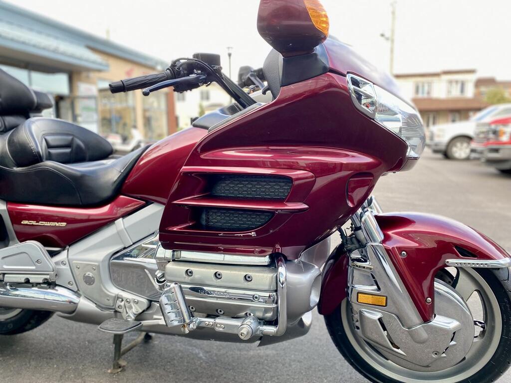 Honda Goldwing GL1800 2004   \*\*\* Moto très propre. La peinture a encore tout son lustre showroom \*\*\*   Renverse, Cruise Control, Radio, suspenction électronique ajustable et plus ! Equipé de l'aileron, contours de valises chromé avec lumière et repose-pied avant   La moto a été inspecté et préparé par Paulo, un des rares spécialistes Goldwing au Québec   Cette unité est chez Goulet Moto Sports de Ste-Thérèse. Téléphonez au 450.435.2408   Possibilité de financement avec plusieurs institutions financières. 2ième chance au crédit disponible.   Goulet Moto Sports est votre concessionnaire moto depuis 1968. Fier représentant officiel des marques HONDA, APRILIA, MOTO GUZZI, VESPA, PIAGGIO, KTM, NIU, SURRON et URAL pour le grand Montréal. Nous avons un énorme choix de moto usagés inspectées par nos professionnels. 2 adresses pour vous servir, soit à Sainte-Thérèse (450.435.2408) et Saint-Jérôme (450.431.6622).   Goulet Moto Sports ne peut être tenu responsable d'une omission, d'un délai ou d'une erreur de transcription de l'information. Le prix affiché reflète la condition de l'unité. Pour différentes raisons les prix peuvent différer de ceux indiqués en ligne. Les données sont affichées à titre indicatif seulement et ne peuvent être considérées comme une information contractuelle. Nous vous encourageons vivement à nous consulter pour plus de détails avant de vous déplacer. Des frais tels que taxes, immatriculation, administrations ou autres peuvent s'appliquer.utres peuvent s'appliquer.  Essence, Transmission: Manuelle, 5 vitesses, Système de refroidissement: Refroidi au liquide, 6 cylindres, 1800.0 CC, Garantie: 1 mois  ----------------------  2004 Honda Goldwing GL1800   \*\*\* Very clean motorcycle. The paint still has all its showroom luster \*\*\*   Reverse, Cruise Control, Radio, adjustable electronic suspension and more! Fitted with spoiler, chrome case surrounds with light and front footrest   The motorcycle has been inspected and prepared by Paulo, one of the few Goldwing specialists in Quebec   This unit is at Goulet Moto Sports in Ste-Thérèse. Call 450.435.2408   Possibility of financing with several financial institutions. 2nd chance credit available.   Goulet Moto Sports has been your motorcycle dealer since 1968. Proud official representative of the HONDA, APRILIA, MOTO GUZZI, VESPA, PIAGGIO, KTM, NIU, SURRON and URAL brands for greater Montreal. We have a huge selection of used motorcycles inspected by our professionals. 2 addresses to serve you, in Sainte-Thérèse (450.435.2408) and Saint-Jérôme (450.431.6622).   Goulet Moto Sports cannot be held responsible for any omission, delay or transcription error in the information. The displayed price reflects the condition of the unit. For various reasons the prices may differ from those indicated online. The data is displayed for information purposes only and cannot be considered as contractual information. We strongly encourage you to consult us for more details before you travel. Charges such as taxes, registration, administrations or others may apply. Others may apply.  Gasoline, Transmission: Manual, 5 speeds, Cooling System: Liquid cooling, 6 cylinders, 1800.0 CC, Warranty: 1 mois