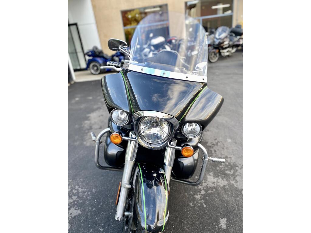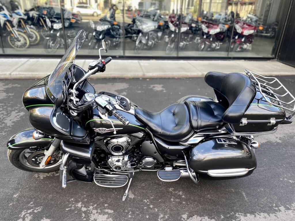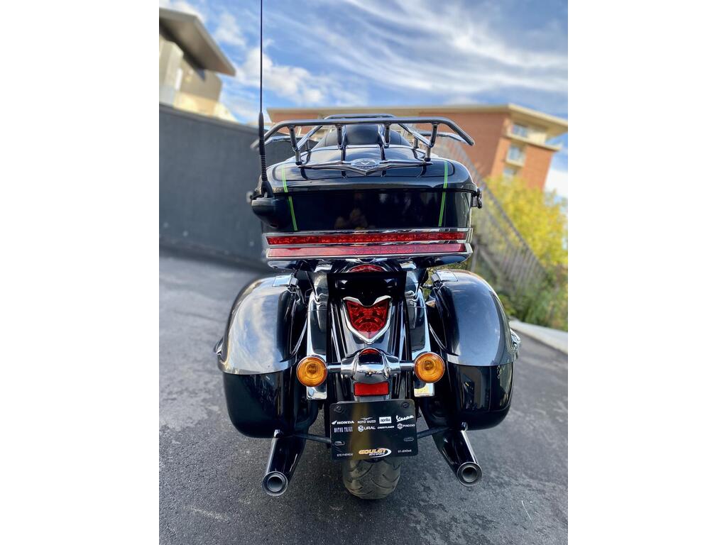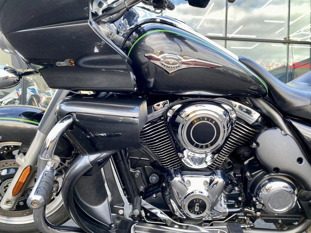 KAWASAKI VOYAGER ABS VN1700BFF 2015   \*\*\*La moto touring par excellence chez Kawasaki et bien équipé - Prix de liquidation\*\*\*   La moto ultime de tourisme par Kawasaki. La Voyager est équipé du fameux moteur bicylindre en V de 1700cc refroidi au liquide et à injection. Cette moto de grand tourisme est équipé du freinage ABS combiné K-ACT II, d'un grand parebrise, de grandes valises latérales et un topcase, d'une Radio FM/AM/Ipod, d'un régulateur de vitesse (Cruise Control) et d'un ordinateur de bord.   - Moteur bicylindre en V (V-twin) 4-temps de 1 700 cm³, injection électronique.  - Boîte 6 vitesses manuelle. Transmission finale par courroie (belt drive)  - Système Audio avec contrôle sur guidon  - Cruise control et mode  - Valises latérales et top case  - Freinage ABS   Cette Kawasaki Voyager 1700 ABS a été complètement vérifié et est en excellent état. La moto est très propre comme les photos en témoignent.   La moto est chez Goulet Moto Sports de Ste-Thérèse. Téléphonez au 450.435.2408   Possibilité de financement avec plusieurs institutions financières. 2ième chance au crédit disponible.   Goulet Moto Sports est votre concessionnaire moto depuis 1968. Fier représentant officiel des marques HONDA, APRILIA, MOTO GUZZI, VESPA, PIAGGIO, KTM et les sidecars URAL pour le grand Montréal. Nous avons un énorme choix de moto usagés inspectées par nos professionnels. 2 adresses pour vous servir, soit à Sainte-Thérèse (450.435.2408) et Saint-Jérôme (450.431.6622).   Goulet Moto Sports ne peut être tenu responsable d'une omission, d'un délai ou d'une erreur de transcription de l'information. Le prix affiché réflète la condition de l'unité. Pour différentes raisons les prix peuvent différer de ceux indiqués en ligne. Les données sont affichées à titre indicatif seulement et ne peuvent être considérées comme une information contractuelle. Nous vous encourageons vivement à nous consulter pour plus de détails avant de vous déplacer. Des frais tels que taxes, frais de préparation, administrations ou autres peuvent s'appliquer.   Comparable à une Harley Davidson FLH Electra Glide, une Honda Goldwing, une BMW K1600LT  Essence, Transmission: Manuelle, 6 vitesses, Système de refroidissement: Refroidi au liquide, 2 cylindres, 1700.0 CC, Garantie: 3 mois  ----------------------  2015 Kawasaki Voyager ABS VN1700BFF   \*\*\*Kawasaki's ultimate touring motorcycle, fully equipped - Clearance Price\*\*\*   Kawasaki's ultimate touring motorcycle. The Voyager is equipped with the renowned 1700cc liquid-cooled, fuel-injected V-twin engine. This grand tourer features K-ACT II combined ABS braking, a large windscreen, large side cases and a top case, an FM/AM/iPod radio, cruise control, and an onboard computer.   - 1700cc 4-stroke V-twin engine with electronic fuel injection.  - 6-speed manual transmission. Belt drive final drive  - Audio system with handlebar controls  - Cruise control and riding mode  - Side cases and top case  - ABS brakes   This Kawasaki Voyager 1700 ABS has been fully inspected and is in excellent condition. The motorcycle is very clean, as the photos show.   The motorcycle is located at Goulet Moto Sports in Ste-Thérèse. Call 450-435-2408.   Financing options available through several financial institutions. Second chance credit available.   Goulet Moto Sports has been your motorcycle dealer since 1968. Proud official representative of HONDA, APRILIA, MOTO GUZZI, VESPA, PIAGGIO, KTM, and URAL sidecars for the Greater Montreal area. We have a huge selection of used motorcycles inspected by our professionals. Two locations to serve you: Sainte-Thérèse (450-435-2408) and Saint-Jérôme (450-431-6622).   Goulet Moto Sports cannot be held responsible for any omissions, delays, or errors in the information provided. The price displayed reflects the condition of the unit. For various reasons, prices may differ from those shown online. The data displayed is for informational purposes only and is not contractually binding. We strongly encourage you to contact us for more details before visiting. Fees such as taxes, preparation fees, administration fees, or other charges may apply.   Comparable to a Harley Davidson FLH Electra Glide, a Honda Goldwing, or a BMW K1600LT  Gasoline, Transmission: Manual, 6 speeds, Cooling System: Liquid cooling, 2 cylinders, 1700.0 CC, Warranty: 3 mois