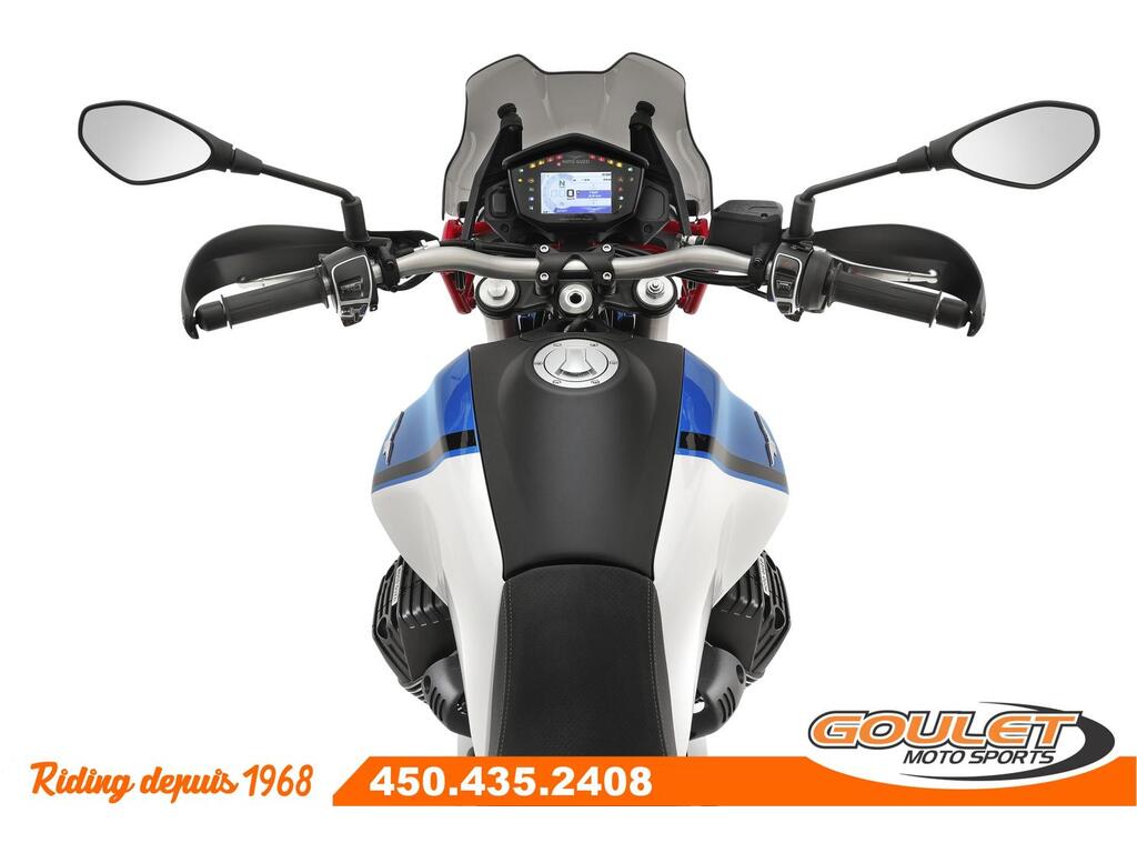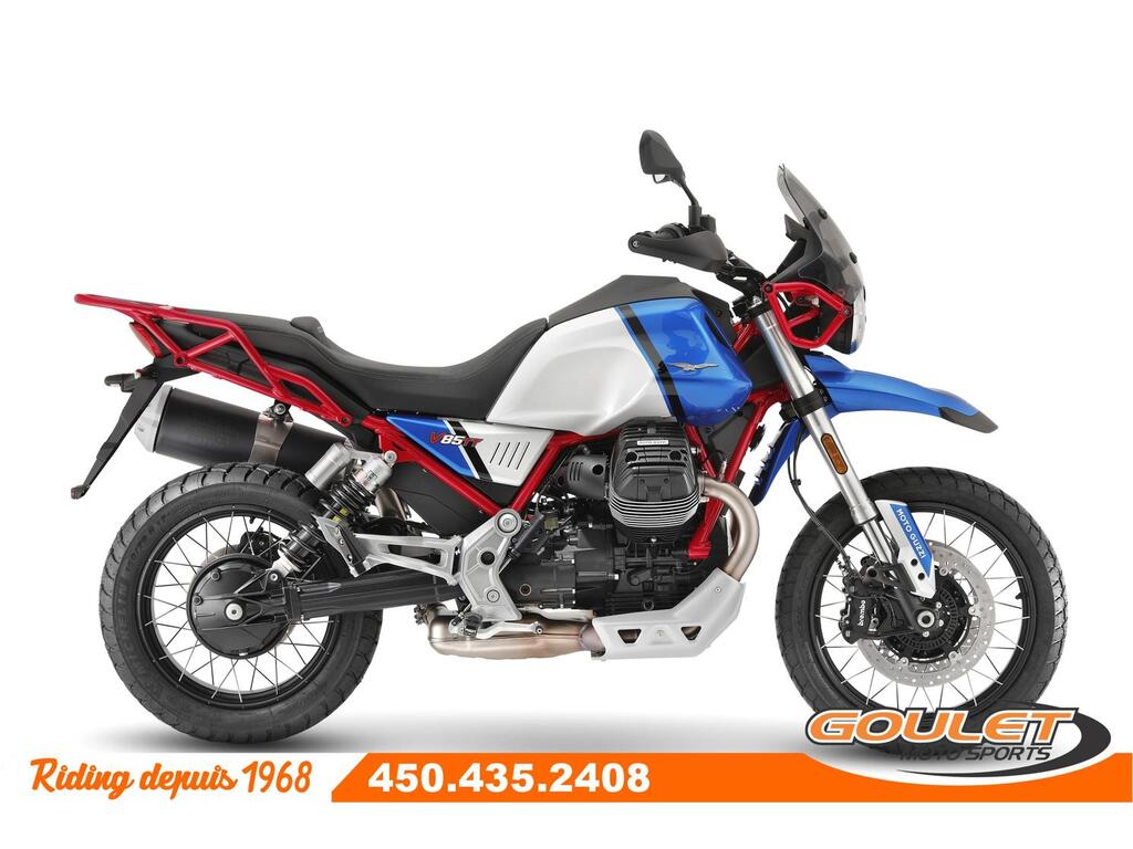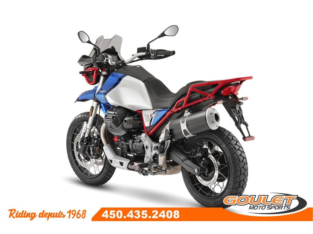 MOTO GUZZI V85TT ADVENTURE   \*\*\* RABAIS DE 2000$ - PRIX RÉGULIER 16790$, PRIX FINAL DE 14790$ \*\*\*   La V85 TT est un trail qui remémore l'atmosphère légendaire des célèbres courses de rallyes des années 80. Elle représente une proposition innovante et originale de trail routier néo-rétro qui combine des références stylistiques propres à l'âge d'or de l'aventure à moto avec les contenus et les fonctions dune moto moderne. Son moteur moderne de 850cc développe un impressionnant couple avec 80hp. La moto viens avec un tableau de bord type TFT de 4,3pc avec des technologies moderne comme les différents mode de conduite (mapping), le contrôle de traction ajustable, le cruise control et la sortie USB. C'est finalement la touche Italienne qui fait que cette moto sort du lot.   - Moteur V2 Transversal de 850cc produisant 80hp et beaucoup de couple (torque).  - Modes de conduite (Road, Rain, Off-Road, Sport et User)  - Contrôle de traction ajustable MGCT  - Régulateur de vitesses (Cruise Control)  - Écran couleur TFT de 4,3pc  - Frein ABS  - Arbre d'entrainement (Driveshaft)  - L'édition Adventure viens avec les 3 valises métaliques arrières.   Cette unité est chez Goulet Moto Sports de Ste-Thérèse. Téléphonez au 450.435.2408   Possibilité de financement avec plusieurs institutions financières. 2ième chance au crédit disponible. Rabais non combinable avec promotion de taux d'intérêt Moto Guzzi, voir promotion Moto Guzzi Canada   Goulet Moto Sports est votre concessionnaire moto depuis 1968. Fier représentant officiel des marques HONDA, APRILIA, MOTO GUZZI, VESPA, PIAGGIO, KTM, NIU, SURRON et URAL pour le grand Montréal. Nous avons un énorme choix de moto usagés inspectées par nos professionnels. 2 adresses pour vous servir, soit à Sainte-Thérèse (450.435.2408) et Saint-Jérôme (450.431.6622).   Goulet Moto Sports ne peut être tenu responsable d'une omission, d'un délai ou d'une erreur de transcription de l'information. Le prix affiché reflète la condition de l'unité. Pour différentes raisons les prix peuvent différer de ceux indiqués en ligne. Les données sont affichées à titre indicatif seulement et ne peuvent être considérées comme une information contractuelle. Nous vous encourageons vivement à nous consulter pour plus de détails avant de vous déplacer. Des frais tels que taxes, immatriculation, administrations ou autres peuvent s'appliquer.   La Moto Guzzi V85TT se compare à une BMW F 850GS, une Triumph Tiger, une KTM 790 Adventure, Yamaha Ténéré 700 ou une Africa Twin  Essence, Transmission: Manuelle, 6 vitesses, Système de refroidissement: Refroidi à l'air, 2 cylindres, 80.0 CV, 853.0 L, Garantie: 2 ans  ----------------------  MOTO GUZZI V85TT ADVENTURE   \*\*\* 2000$ IN REBATE - REGULAR PRICE OF 16790$, FINAL PRICE OF 14790$ \*\*\*   The V85 TT is a trail that recalls the legendary atmosphere of the famous rally races of the 80s. It represents an innovative and original proposal of neo-retro road trail that combines stylistic references specific to the golden age of the motorcycle adventure with the contents and functions of a modern motorcycle. Its modern 850cc engine develops impressive torque with 80hp. The motorcycle comes with a 4.3pc TFT type dashboard with modern technologies such as different driving modes (mapping), adjustable traction control, cruise control and USB output. It's ultimately the Italian touch that makes this bike stand out.   - 850cc Transverse V2 engine producing 80hp and lots of torque.  - Driving modes (Road, Rain, Off-Road, Sport and User)  - MGCT adjustable traction control  - Cruise control (Cruise Control)  - 4.3pc TFT color screen  - ABS brake  - Driveshaft  - The Adventure edition comes with the 3 rear metal cases.   This unit is at Goulet Moto Sports in Ste-Thérèse. Call 450.435.2408   Possibility of financing with several financial institutions. 2nd chance credit available. Moto Guzzi rate rebate not applicable with cash rebate, see Moto Guzzi Canada   Goulet Moto Sports has been your motorcycle dealer since 1968. Proud official representative of the HONDA, APRILIA, MOTO GUZZI, VESPA, PIAGGIO, KTM, NIU, SURRON and URAL brands for greater Montreal. We have a huge selection of used motorcycles inspected by our professionals. 2 addresses to serve you, in Sainte-Thérèse (450.435.2408) and Saint-Jérôme (450.431.6622).   Goulet Moto Sports cannot be held responsible for any omission, delay or transcription error in the information. The displayed price reflects the condition of the unit. For various reasons the prices may differ from those indicated online. The data is displayed for information purposes only and cannot be considered as contractual information. We strongly encourage you to consult us for more details before you travel. Charges such as taxes, registration, administration or others may apply.   The Moto Guzzi V85TT compares to a BMW F 850GS, a Triumph Tiger, a KTM 790 Adventure, Yamaha Ténéré 700 or an Africa Twin  Gasoline, Transmission: Manual, 6 speeds, Cooling System: Air cooling, 2 cylinders, 80.0 HP, 853.0 L, Warranty: 2 ans