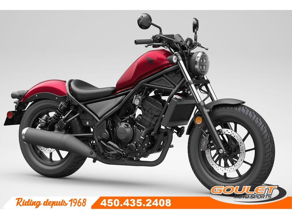 Honda CMX 300 REBEL ABS   \*\*\* 630$ DE RABAIS - Prix Final de 6495$ - Moto neuve avec sa pleine garantie Honda \*\*\*   La Rebel 300 est la moto cruiser type custom de Honda. Avec son réservoir au look classique, son cadre étroit, sa position très Low Ride, sa fourche d'allure inclinée et ses éléments noirs, la Rebel combine les styles « bobber » et « chopper »   - Selle basse (27,2pc) facile à enfourcher avec siège passager  - Moteur monocylindre refroidi par liquide et à injection  - Lumière et clignotant au DEL  - Les gros pneus (130/90-16 à l'avant, 150/80-16 à l'arrière) font contraste au cadre étroit de la Rebel et ajoutent à sa posture solide et confiante.  - Des freins à disque avant et arrière produisent un freinage efficace et sûr. Le système ABS de série offre une performance de freinage exceptionnelle   \*\*\* FRAIS DE TRANSPORT ET PRÉPARATION INCLUS DANS LE PRIX\*\*\*   Cette unité est chez Goulet Moto Sports de Ste-Thérèse. Téléphonez au 450.435.2408   Possibilité de financement avec plusieurs institutions financières. 2ième chance au crédit disponible.   Goulet Moto Sports est votre concessionnaire moto depuis 1968. Fier représentant officiel des marques HONDA, APRILIA, MOTO GUZZI, VESPA, PIAGGIO, KTM, NIU, SURRON et URAL pour le grand Montréal. Nous avons un énorme choix de moto usagés inspectées par nos professionnels. 2 adresses pour vous servir, soit à Sainte-Thérèse (450.435.2408) et Saint-Jérôme (450.431.6622).   Goulet Moto Sports ne peut être tenu responsable d'une omission, d'un délai ou d'une erreur de transcription de l'information. Le prix affiché reflète la condition de l'unité. Pour différentes raisons les prix peuvent différer de ceux indiqués en ligne. Les données sont affichées à titre indicatif seulement et ne peuvent être considérées comme une information contractuelle. Nous vous encourageons vivement à nous consulter pour plus de détails avant de vous déplacer. Des frais tels que taxes, immatriculation, administrations ou autres peuvent s'appliquer.  Essence, Transmission: Manuelle, 6 vitesses, Système de refroidissement: Refroidi au liquide, 1 cylindres, 286.0 CC, Garantie: 1 an  ----------------------  Honda CMX 300 REBEL ABS   \*\*\* $630 OFF - Final Price $6,495 - New motorcycle with full Honda warranty \*\*\*   The Rebel 300 is Honda's custom cruiser motorcycle. With its classic-looking fuel tank, narrow frame, ultra-low-ride stance, raked fork, and black accents, the Rebel combines bobber and chopper styles.   - Low seat (27.2 in) for easy entry and exit with passenger seat.  - Liquid-cooled, fuel-injected single-cylinder engine.  - LED lights and turn signals.  - Large tires (130/90-16 front, 150/80-16 rear) contrast with the Rebel's narrow frame and add to its solid, confident stance.  - Front and rear disc brakes provide efficient and secure stopping power. The standard ABS system provides exceptional braking performance.   \*\*\* TRANSPORTATION AND PREPARATION INCLUDED IN THE PRICE \*\*\*   This unit is at Goulet Moto Sports in Ste-Thérèse. Call 450.435.2408.   Financing available with several financial institutions. Second chance credit available.   Goulet Moto Sports has been your motorcycle dealer since 1968. Proud official representative of the HONDA, APRILIA, MOTO GUZZI, VESPA, PIAGGIO, KTM, NIU, SURRON, and URAL brands for the greater Montreal area. We have a huge selection of used motorcycles inspected by our professionals. We have two locations to serve you: Sainte-Thérèse (450.435.2408) and Saint-Jérôme (450.431.6622).   Goulet Moto Sports cannot be held responsible for any omission, delay, or transcription error of the information. The price displayed reflects the condition of the unit. For various reasons, prices may differ from those indicated online. The data displayed is for informational purposes only and cannot be considered contractual information. We strongly encourage you to contact us for more details before traveling. Fees such as taxes, registration, administration, or others may apply.  Gasoline, Transmission: Manual, 6 speeds, Cooling System: Liquid cooling, 1 cylinders, 286.0 CC, Warranty: 1 an